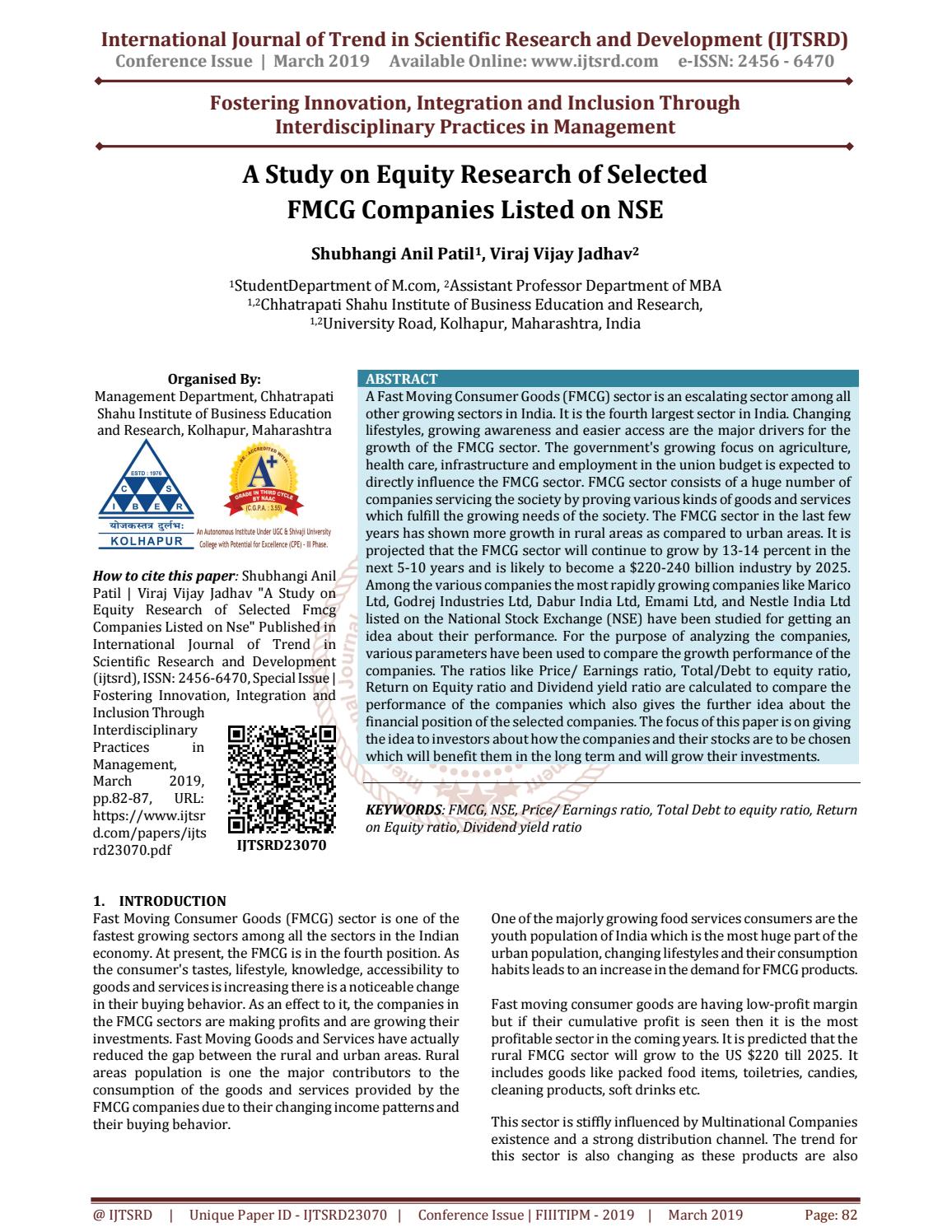 A Study On Equity Research Of Selected Fmcg Companies Listed On Nse By International Journal Of Trend In Scientific Research And Development Issn 2456 6470 Issuu - 48,000 crores fmcg segment was one of the fast growing industries in india.